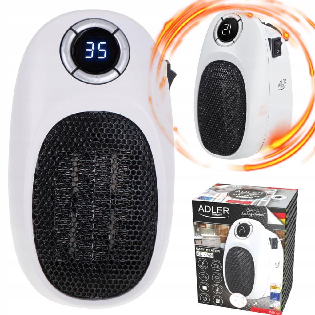 Iako je prilično mala, grijalica Adler 7749 snage 1500 W može uspješno zagrijati prostoriju površine 32 četvorna metra. Zbog svoje male veličine i nedostatka kabela, grijač je jednostavan za pohranjivanje i putovanje. . Nezamjenjiv kada je u pitanju grijanje rashladne prostorije ili u slučaju kvara na centralnom grijanju. Uređaj je opremljen timerom s odgodom gašenja do 12 sati i mogućnošću kontrole temperature između 15 i 35C s jasnim, bijelim LED zaslonom.