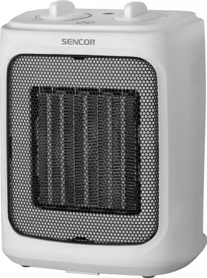 Keramički grijač marke SENCOR. Potrošnja energije 2000 W. Brzina odabira u 2 koraka. Preporučeno područje primjene u rasponu od 10–15 m2. Maksimalna buka ≤ 60 dB. Visoko učinkoviti PTC keramički grijaći elementi Funkcija ventilatora. Zaštita od pregrijavanja i sušenja Mase od 1,4 kg.