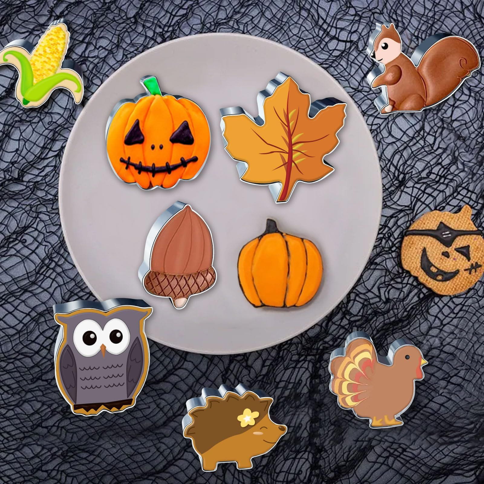 Nikcorp Jesenski kalupi za kekse 8 kom, nehrđajući čelik, sigurni za djecu, oblici bundeva, list, vjeverica, za kolače i fondan