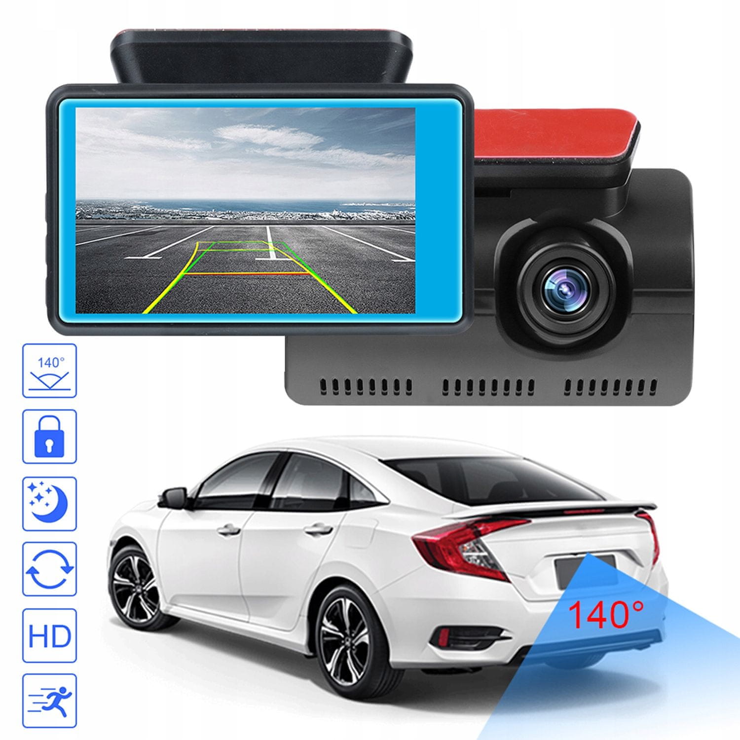 - Široki kut snimanja od 140°: Snima širok pogled na cestu, povećavajući sigurnost i vidljivost.