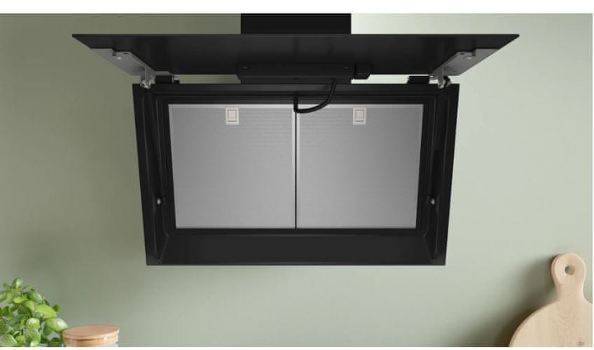 Elegantna kuhinjska napa u kosom dizajnu namijenjena je zidnoj montaži. Nudi dvije mogućnosti rada – odvod zraka ili cirkulacija zraka. Potonji zahtijeva kupnju kompleta za recirkulaciju (Clean Air Plus ili Longlife). Opremljena je TourchControl dodirnim upravljanjem, gdje možete birati između četiri razine performansi. Od toga nudi tri brzine i intenzivnu razinu, koja se automatski isključuje nakon nekoliko minuta. Zahvaljujući motoru EcoSilence Drive™, mapa nudi energetski učinkovit, izdržljiv i ekstremno tih rad.