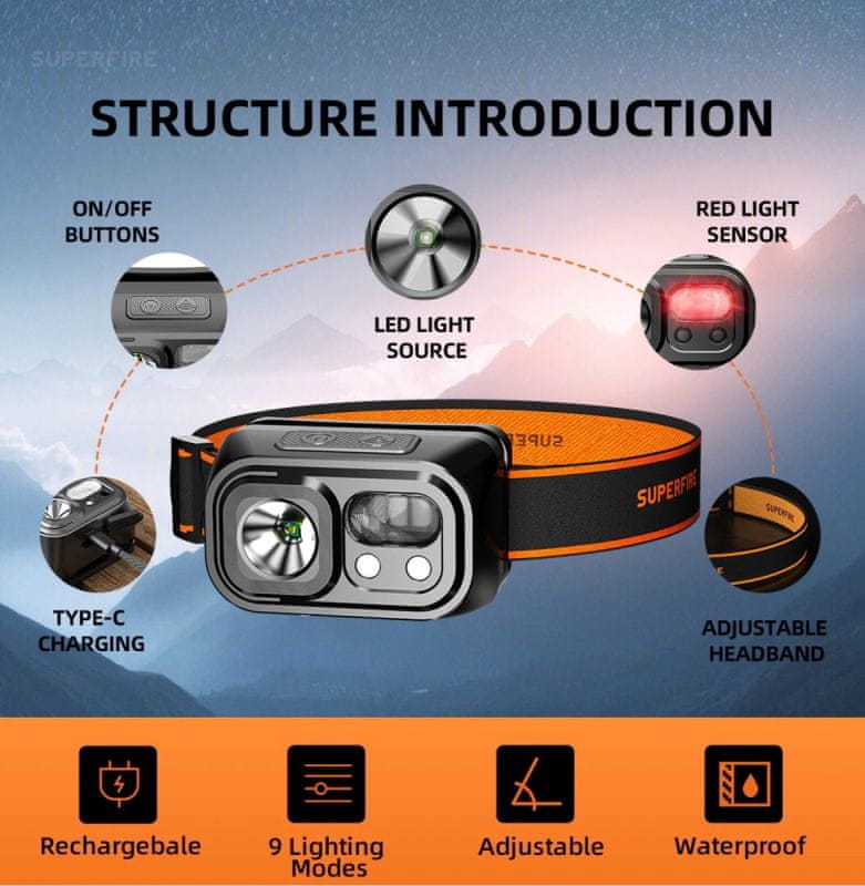 - Supfire HL23-S LED lampa