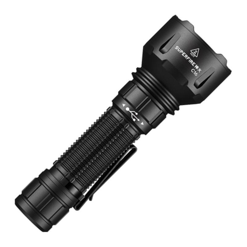 Zahvaljujući čvrstom kućištu od otporne aluminijske legure, maloj težini i praktičnim dimenzijama, svjetiljka je lako upravljiva jednom rukom i savršena za nošenje. Supfire C16 spaja snagu, izdržljivost i kompaktnost u jednom elegantnom paketu.