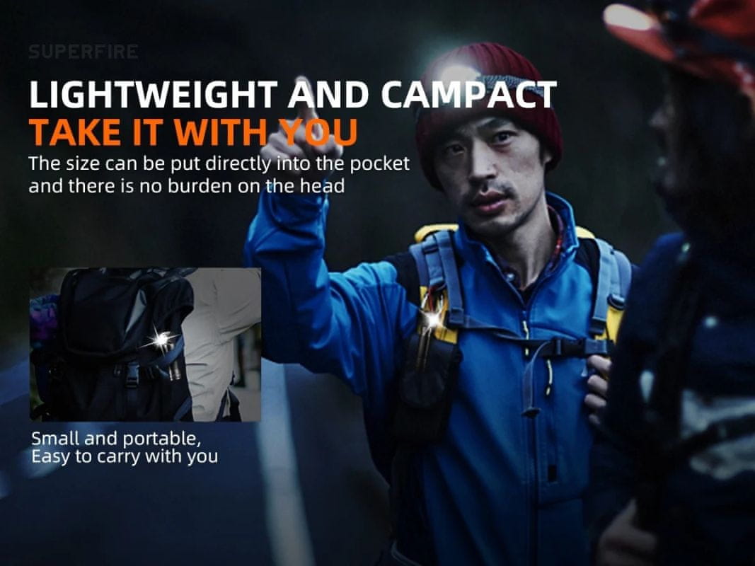 Supfire TH03 je ultra lagana punjiva LED čelna svjetiljka snage 5W, koja pruža svjetlinu od 460lm. Savršena za rad, lov ili kampiranje, nudi 5 načina osvjetljenja i mogućnost okretanja svjetla do 180°.