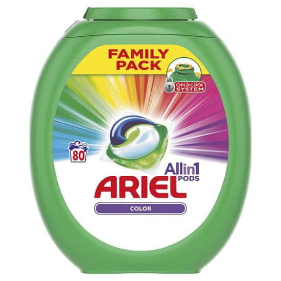 Ekonomični paket Ariel kapsule će osigurati 80 serija potpuno čistog rublja. Kapsule se u potpunosti otapaju već pri pranju na 30 °C, istovremeno štite i oživljavaju boju vaše odjeće, doziranje je jednostavno.
