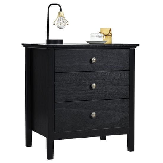 Northix Bočni stolić s 3 ladice, crni, MDF, dimenzije 60x45x66 cm