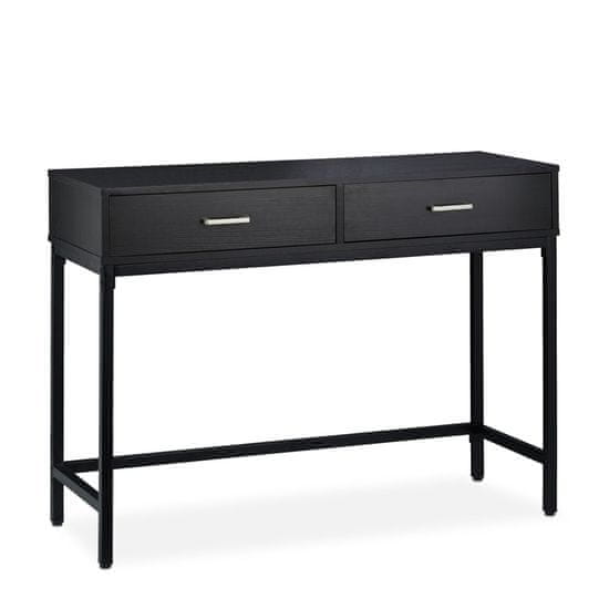 Northix Konzolni stolić s 2 ladice drveni crni sa srebrnim ručkama