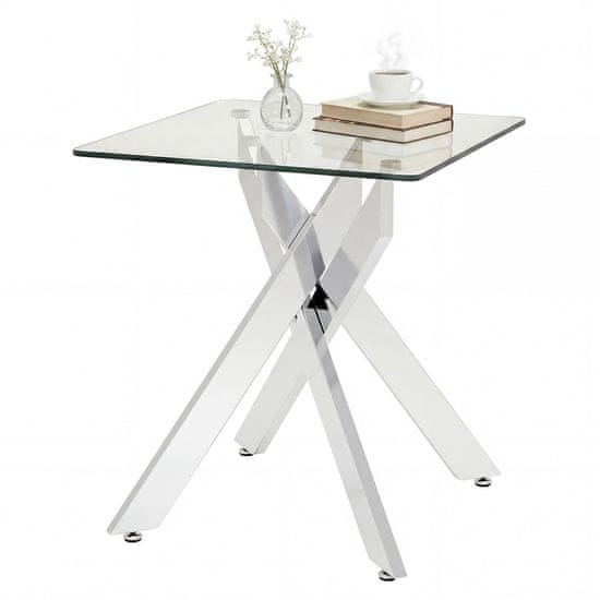 Northix Kvadratni stakleni bočni stolić s metalnim okvirom, srebrni, kaljeno staklo