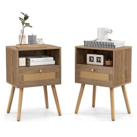 Northix Noćni ormarić od ratana, set od 2 komada s ladicom i policom 40x30x60,5 cm
