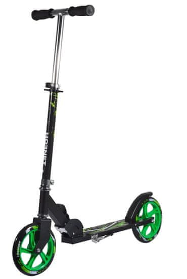 Hudora romobil Scooter Hornet ima jaku aluminijsku konstrukciju koja omogućuje sigurnu vožnju, kotače od 200 mm, nožnu kočnicu stražnji kotač točku za parkiranje i ležajeve ABEC 5.