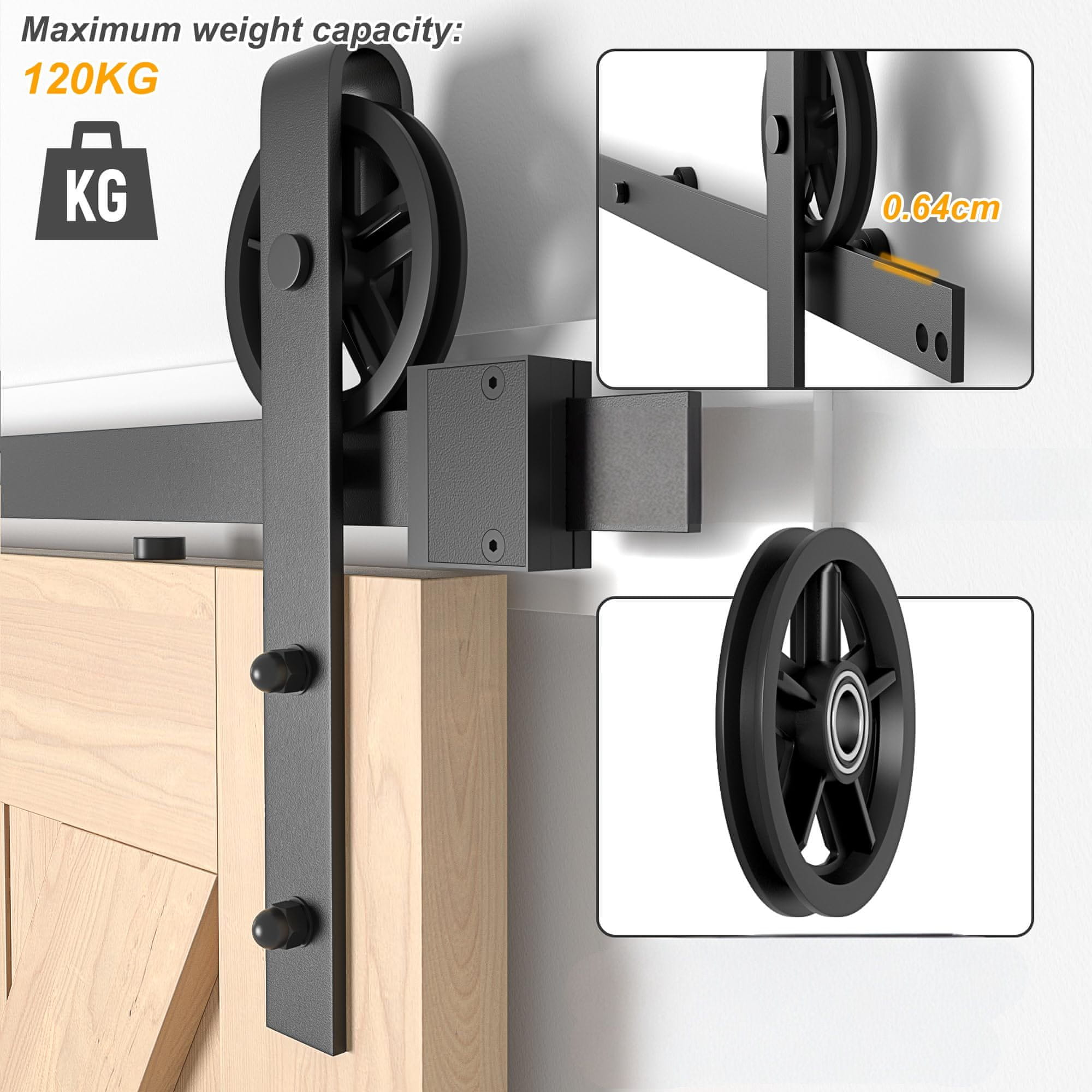 Nikcorp Sustav za klizna vrata Barn Door za tiho i glatko klizanje, set vodilica od ugljičnog čelika, nosivost 120 kg, crna, 213 cm