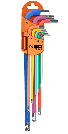 Neo Tools komplet imbus ključeva uključuje 9 imbus ključeva, veličine od 1,5 do 10 mm (1,5, 2, 2,5, 3, 4, 5, 6, 8, 10 mm).