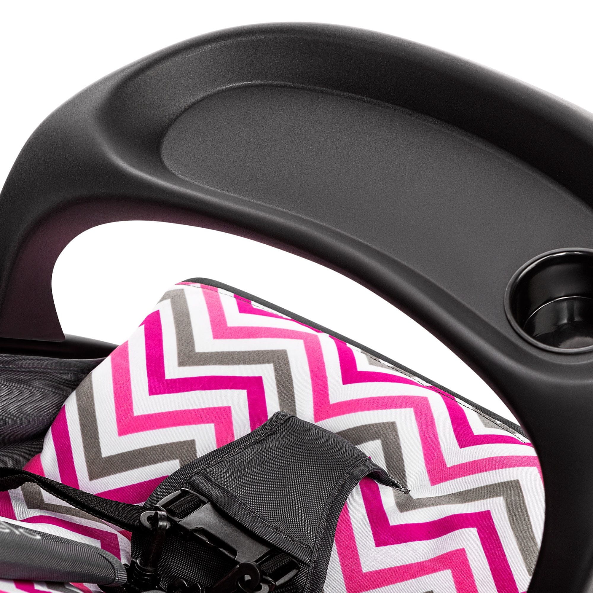 Emma Plus je opremljena praktičnim odvojivim pladnjem koji služi kao prostor za grickalice ili igračke, a ujedno obavlja funkciju sigurnosne prečke. Za roditelje su uključeni praktičan organizator na ručki i dodatna torba, gdje će ključevi, telefon i ostali pribor uvijek biti sigurno pohranjeni i nadohvat ruke.