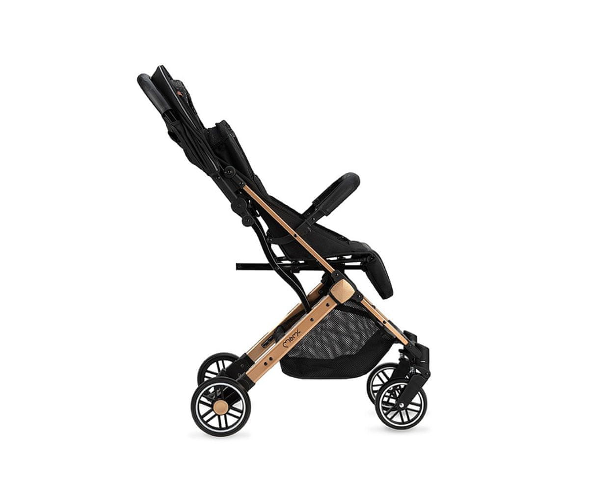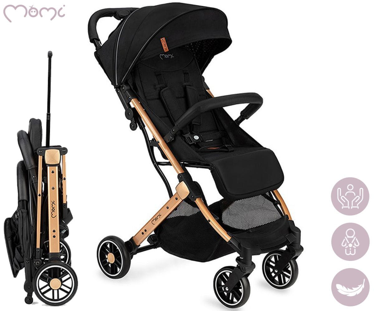 MoMi ESTELLE Gold kolica 2u1, sklopiva, krov, naslon, pojasevi, crna i zlatna