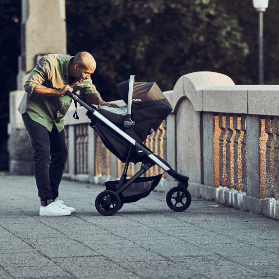 Kotači imaju kočnicu, a na nadstrešnici je mrežasta tkanina koja štiti od sunčevih zraka te omogućuje pogled na mališana.