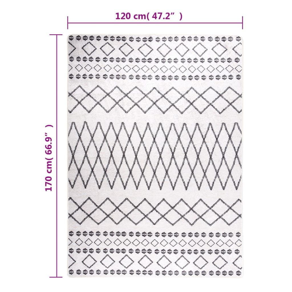 Vidaxl Perivi tepih crno-bijeli 120 x 170 cm