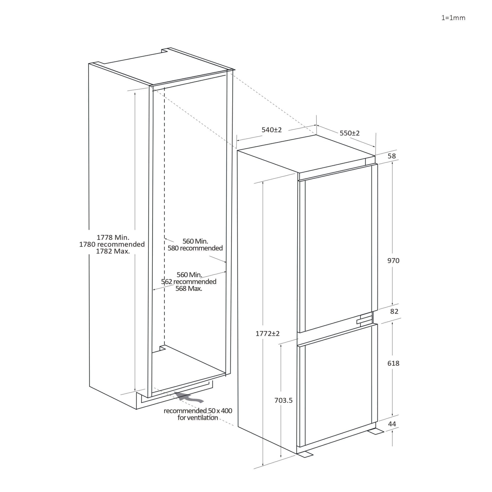 | Dimenzije ugradbene niše (V x Š x D) | 1778–1782 × 560–568 × 560–580 mm |