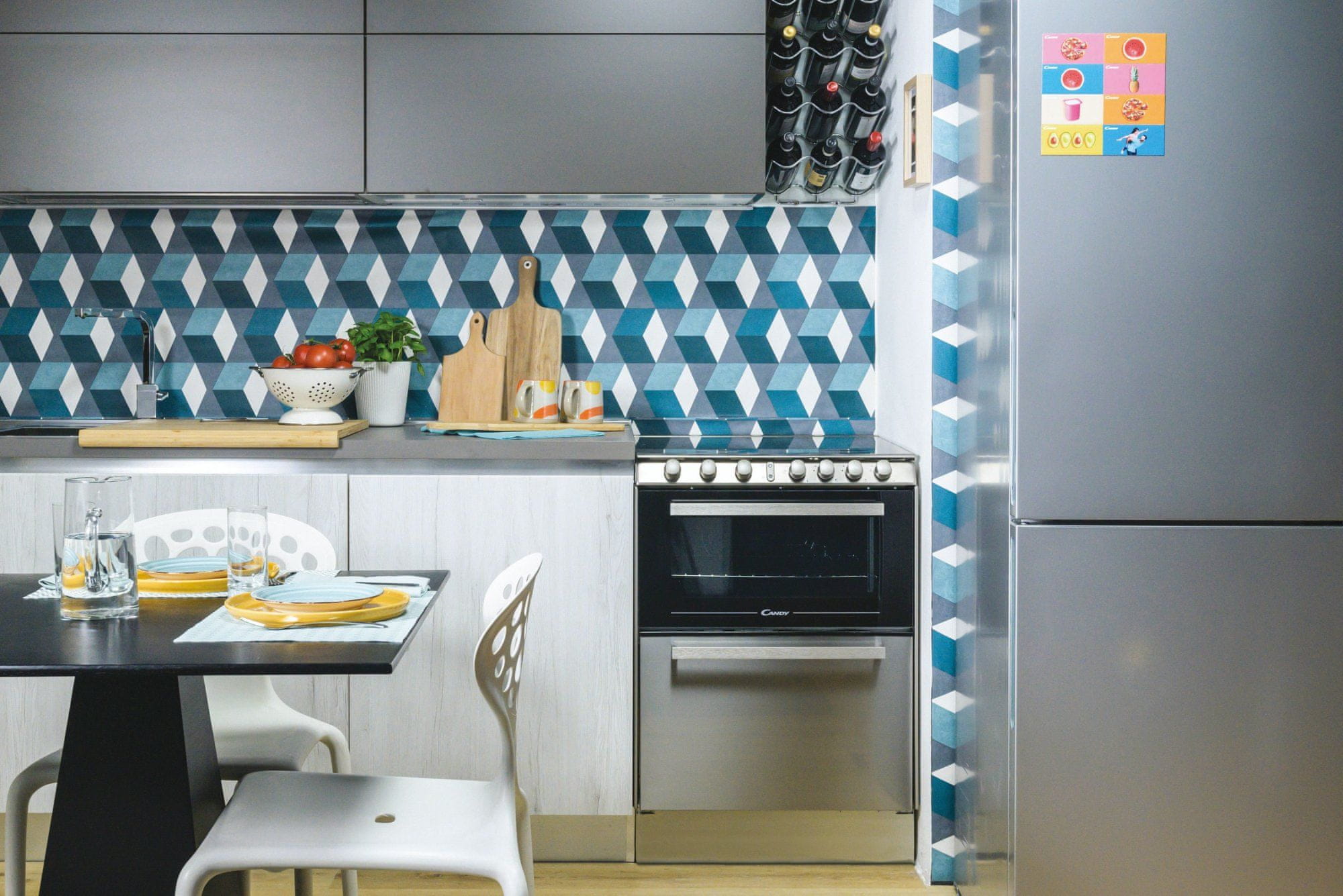 Samostojeći štednjak Candy TRIO4GXNT/1 kombinira + u jednom aparatu perilicu suđa, pećnicu i plinsku ploču za kuhanje s poklopcem, u standardnim dimenzijama.