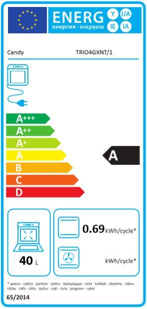 | Klasa energetske učinkovitosti – prvi prostor za pečenje | A |