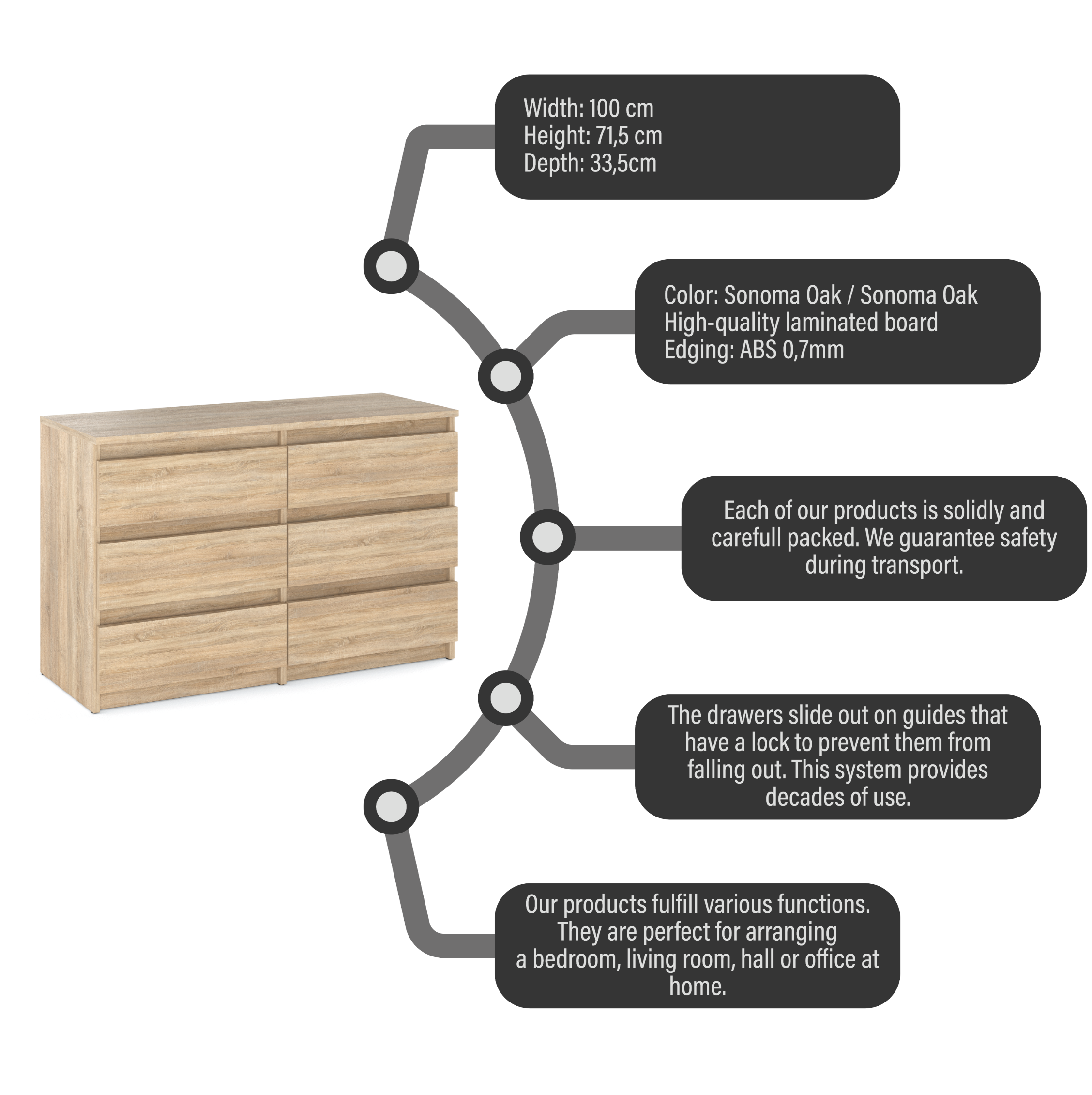 Komoda od hrasta Sonoma sa 6 ladica 100 CM TV ormarić Namještaj za dnevni boravak
