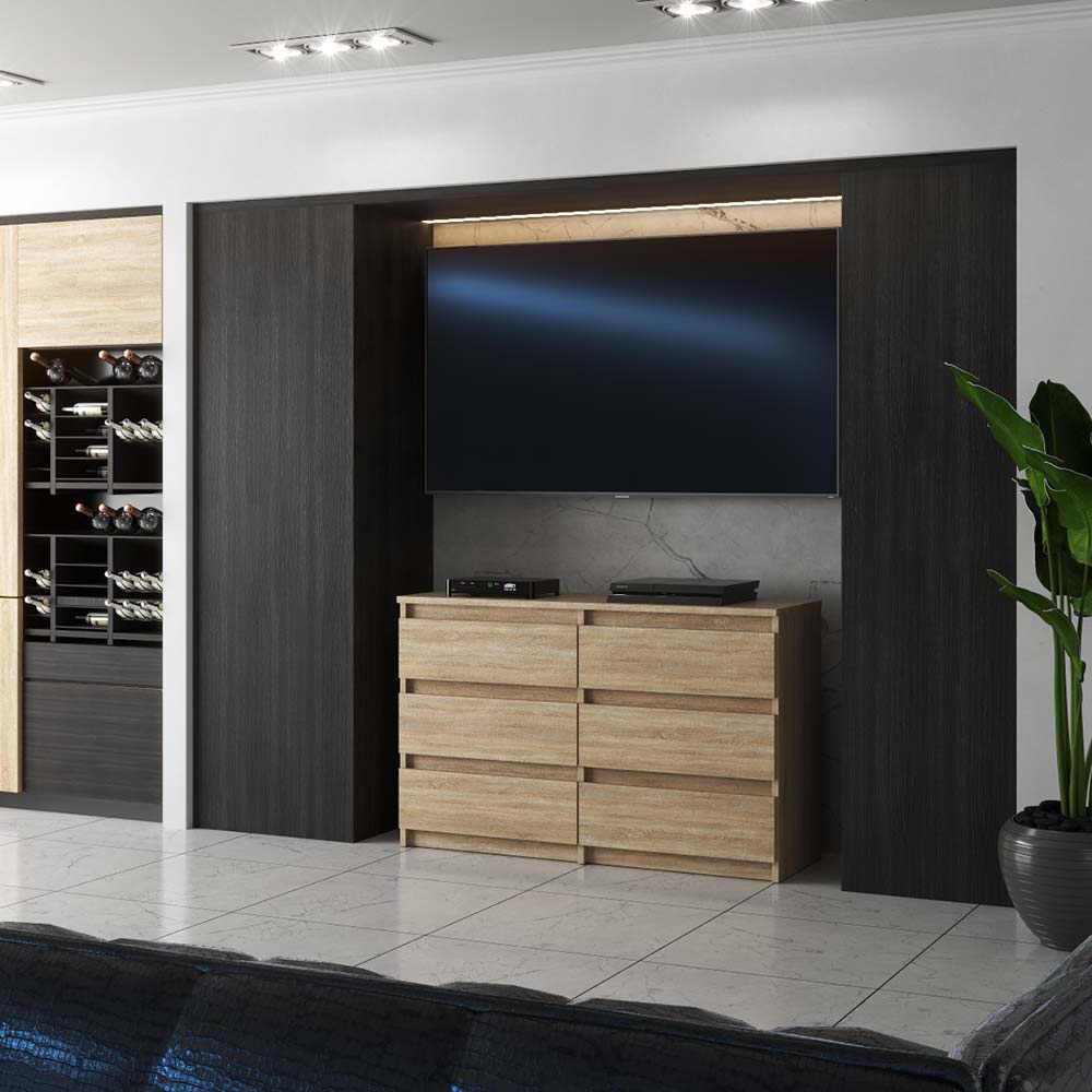Komoda od hrasta Sonoma sa 6 ladica, TV ormarić 100 cm, namještaj za dnevni boravak