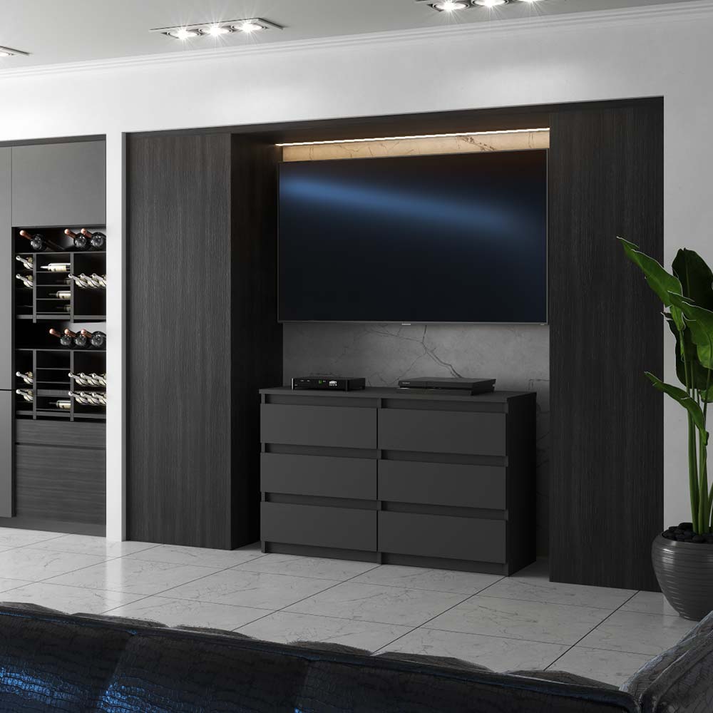 Komoda za dnevni boravak TV ormarić 100 CM 6 ladica mat siva