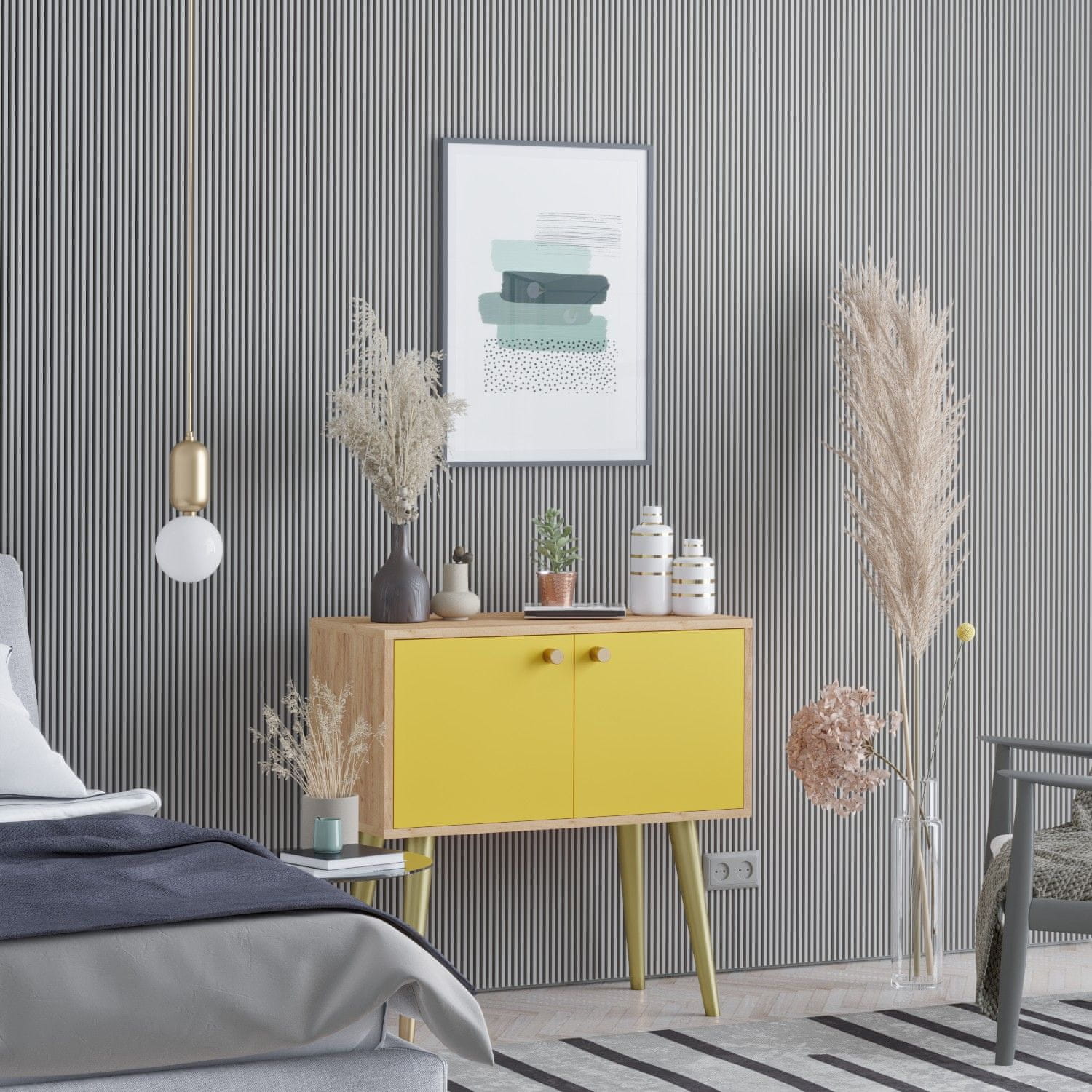 Dodajte dašak stila svom domu s konzolom JOLA. Ova elegantna konzola ne samo da nudi funkcionalnost s brojnim policama, već i unosi toplinu drvenim nogama. Izrađena od 100% čestica obloženih melaminom, savršena je za fiksiranje na zid. Idealna za svaki prostor!
