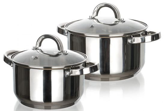Banket komplet od dvije posude od nehrđajućeg čelika može se koristiti na svim vrstama štednjaka. Poklopci su izrađeni od trajnog stakla i imaju otvor za paru. Prozirna površina poklopaca omogućuje potpunu kontrolu nad kuhanjem. Cijeli opis