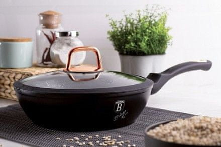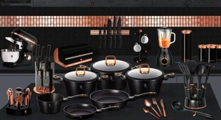Tražite li prikladan set posuđa za svoju kuhinju? Uz set ćete dobiti sav potreban pribor za kuhanje, bez obzira kuhate li za sebe ili za više osoba. Velika prednost je što možete naručiti više posuđa odjednom od provjerenog proizvođača BERLINGERHAUS. Set posuđa ujedinjen je jedinstvenim dizajnom, a crno-zlatna boja cijelog seta je univerzalna i istaknut će se u svakoj kuhinji.