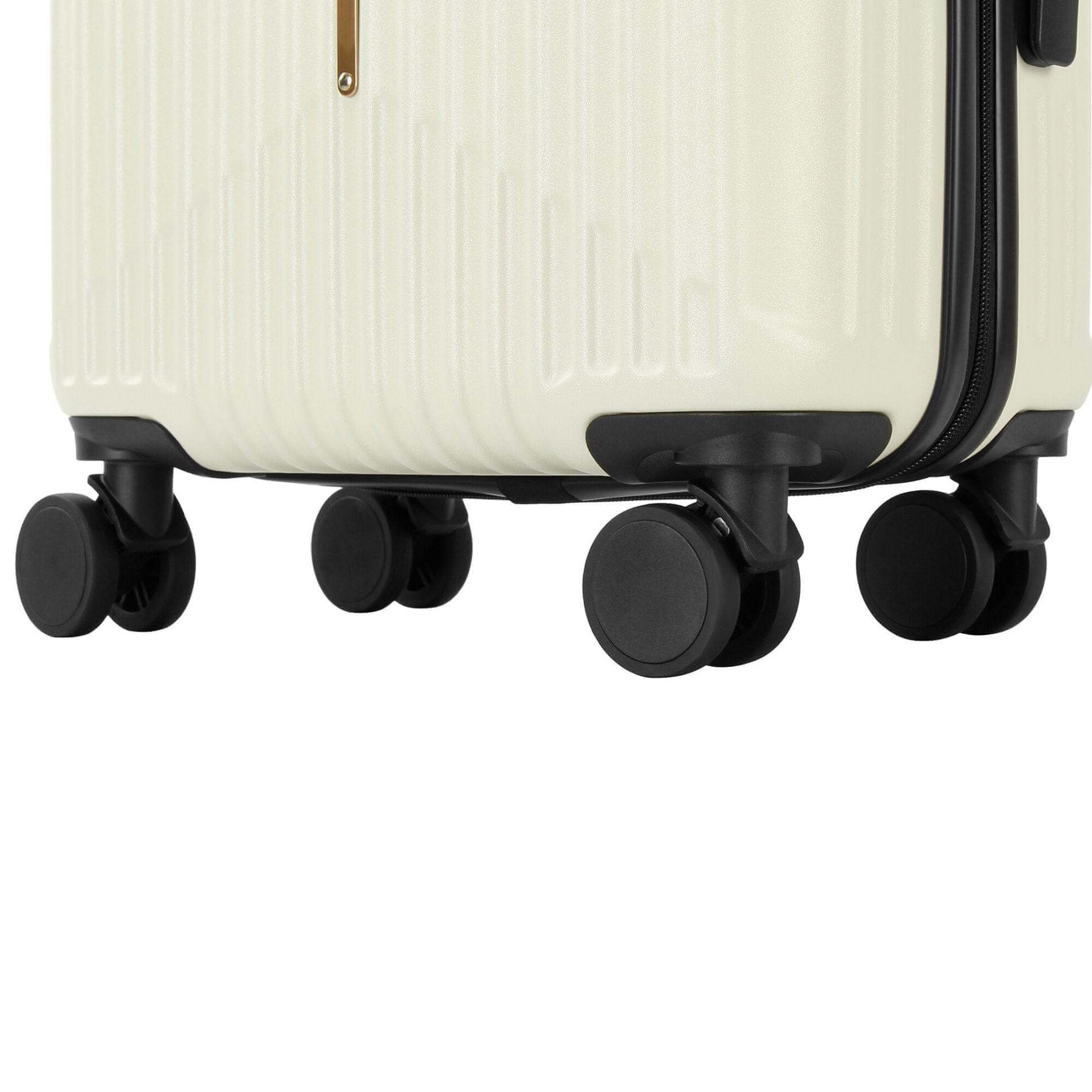 Svaki kovčeg je opremljen s 4 rotirajuća i dvostruka kotačića, koja omogućuju jednostavno i glatko rukovanje u svim smjerovima. Zahvaljujući tim kotačićima, kofere možete lako premještati čak i u uskim prostorima, kao što su zračne luke ili hotelski hodnici. Osim toga, dvostruki kotači osiguravaju veću stabilnost i otpornost na habanje.