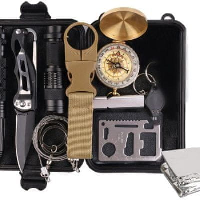 Komplet za preživljavanje 10 u 1 sadrži mnoge korisne alate. Sve je upakirano u praktičnu vodonepropusnu torbu, u koju možete staviti sav priloženi pribor. Paket za preživljavanje zanimljiva je ideja za poklon za svakoga, a posebno za one koje zanima izviđaštvo ili turizam.