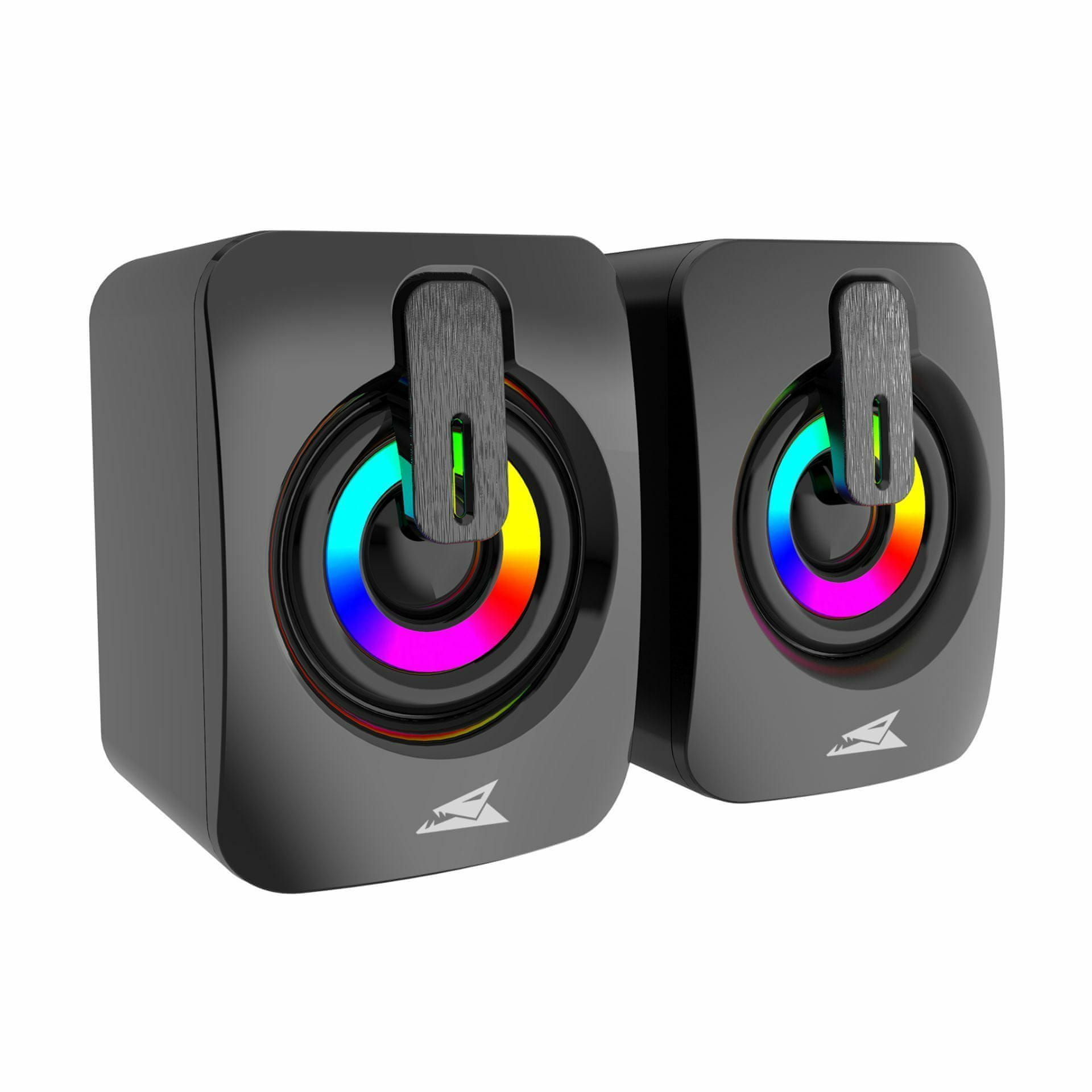 Stereo zvučnici Baracuda BGSP-011 SEASHELL snage 2×3000 mW i frekvencijskim odzivom 25Hz-20kHz pružaju bogat zvuk za igre i zabavu. Elegantan crni dizajn s LED duginom dodaje vizualni efekt, kompaktna veličina omogućuje jednostavnu instalaciju. Povezivanje preko 3,5 mm stereo i USB osigurava besprij