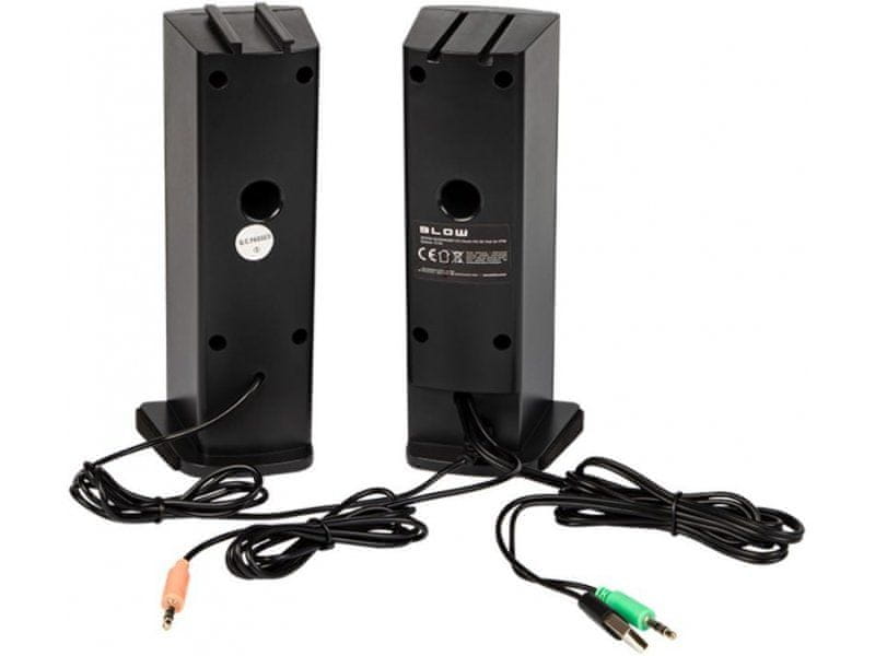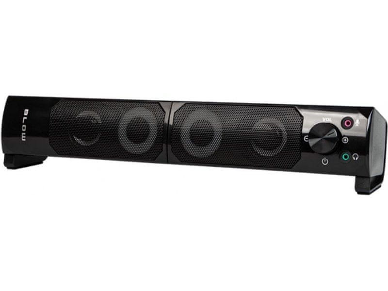 Komplet od dva računalna zvučnika koji se mogu pretvoriti u soundbar. Zvučnici imaju Bluetooth funkciju koja omogućuje bežično povezivanje s uređajima te integriranu višebojnu RGB LED rasvjetu. Savršeno za igre i filmove: osvjetljenje zvučnika osigurat će nezaboravno iskustvo tijekom uzbudljivih igara u virtualnom svijetu. Gledanje znanstveno-fantastičnih filmova i akcijskih scena uz učinkovite BLOW zvučnike s pozadinskim osvjetljenjem poboljšat će prijem i užitak u projekciji. Zahvaljujući ugrađenoj Bluetooth funkciji, zvučnici omogućuju bežično povezivanje s Bluetooth uređajima. Osim toga, jedan od zvučnika ima kontrolu glasnoće koja nam omogućuje podešavanje zvuka na željenu razinu. Na prednjoj ploči nalaze se i ulazi za slušalice i mikrofon. Uz ugrađeni Bluetooth, zvučnici omogućuju bežično povezivanje s uređajima koji podržavaju Bluetooth. Osim toga, na jednom od zvučnika nalazi se i kontrola glasnoće koja omogućuje podešavanje zvuka na željenu razinu. Na prednjoj ploči nalaze se i ulazi za slušalice i mikrofon.