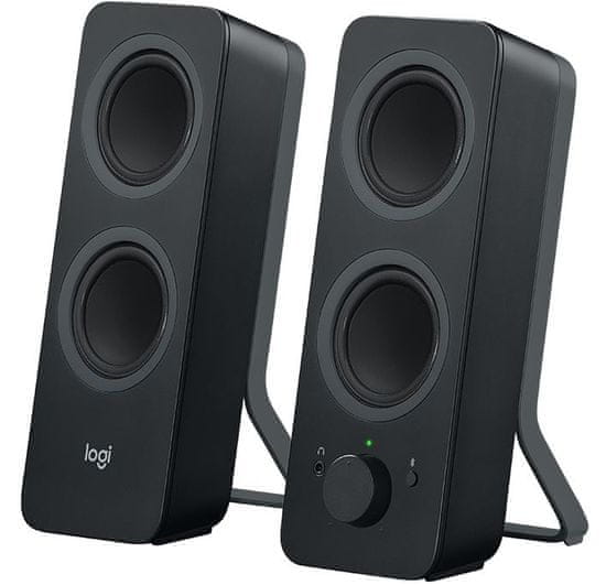 Z207Lako bežično slušajte glazbu preko Bluetooth® uređaja kao što je vaš telefon ili tablet ili se istodobno povežite s računalo putem 3,5 mm analognog kabla i jednostavno upravljajte među njima. Snažni 5W satelitski zvučnici donose snažan, jasan i glasan zvuk, koji će popraviti vaš dan. Iznimni driveri zvučnika su poznati Logitech standard. Zvučnike lako upravljate s jednostavnim okretljivim gumbom za zvuk i jednostavnim gumbom, koji omogućuje ili onemogućuje bežično povezivanje. |