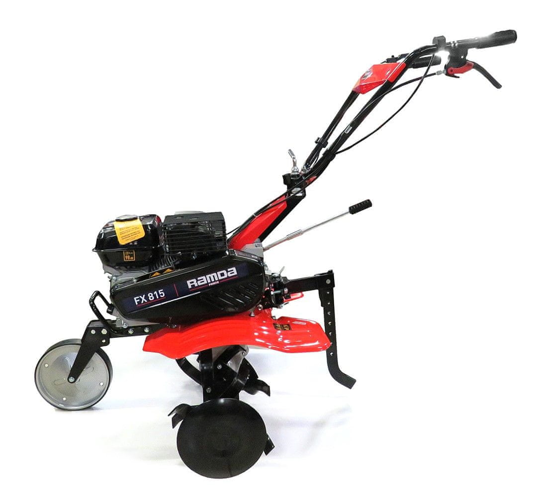 Ramda FX815TG kopačica može se pohvaliti 4-taktnim, zrakom hlađenim motorom Texas TG725 i gumenim kotačima. Pri 3600 okretaja u minuti, radi sa 4 kW snage. Ima ručni starter i dvije brzine za naprijed i jednu za nazad. Ručke omogućuju dobar prihvat i lako upravljanje kopačicom koja je nezaobilazan stroj za aktivnu obradu tla.