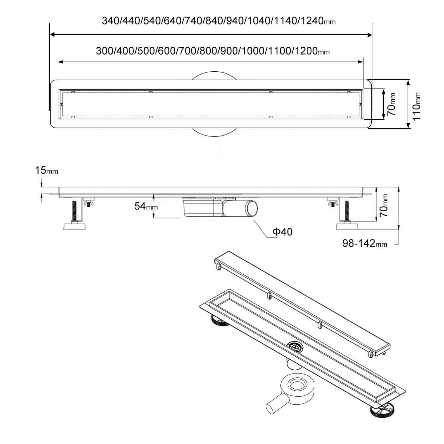 - Širina: standardna dimenzija za tuš sustave