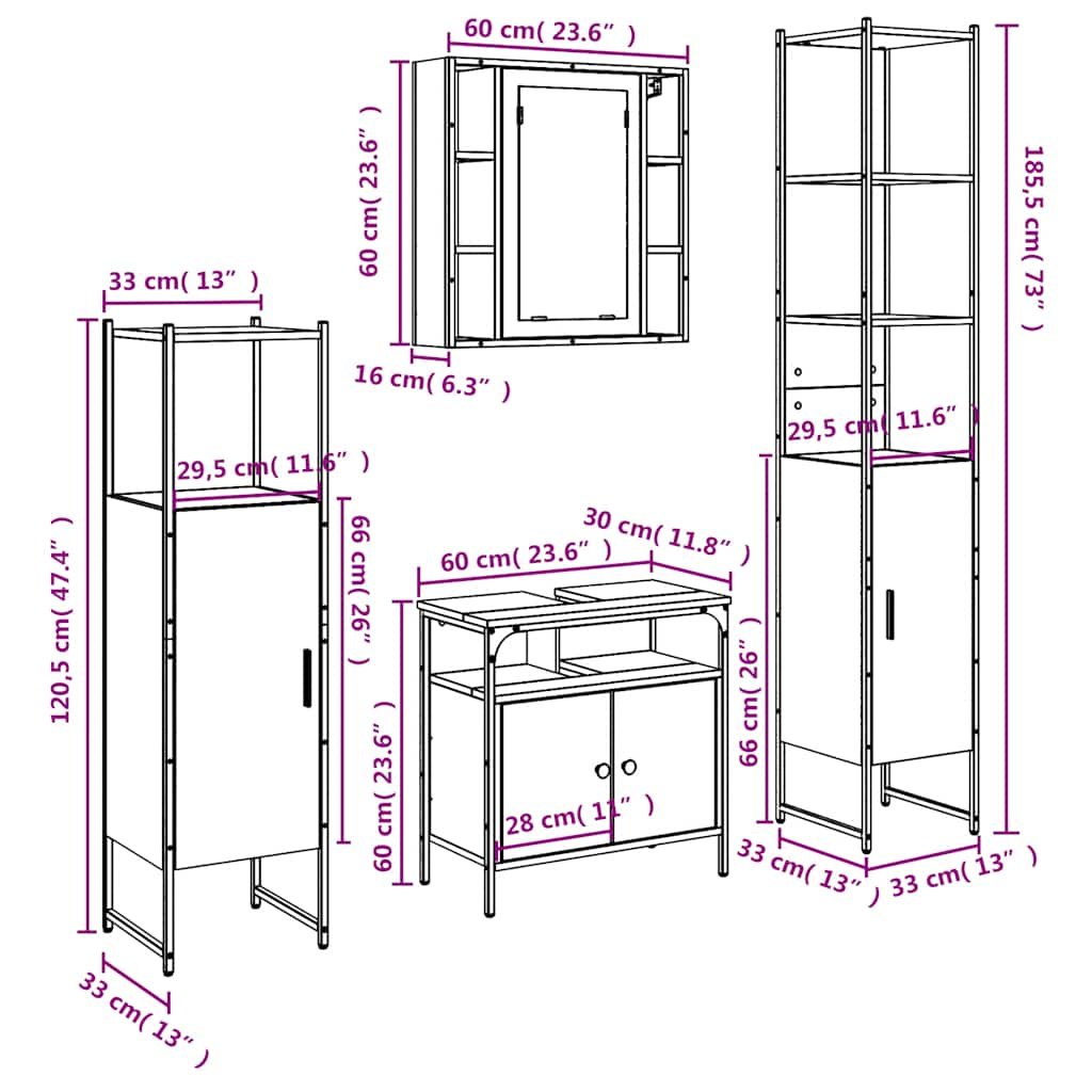 Vidaxl 4-dijelni set kupaonskih ormarića boja dimljenog hrasta drveni
