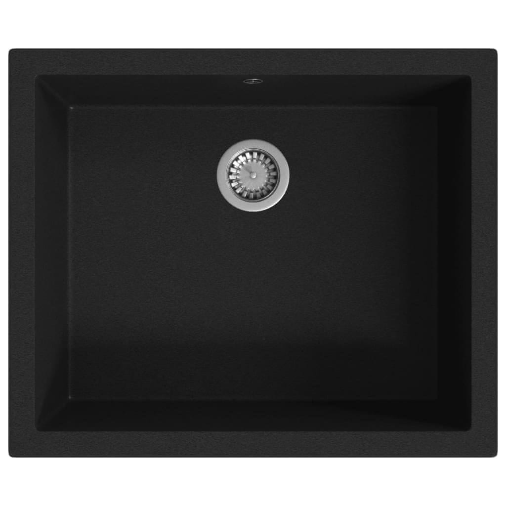 Vidaxl Kuhinjski sudoper s otvorom protiv prelijevanja crni granitni