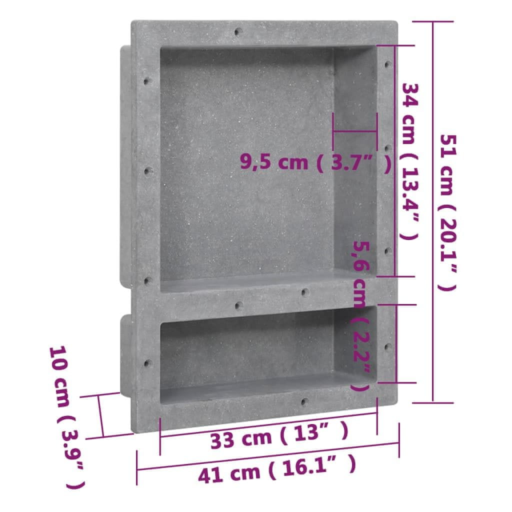 Vidaxl Niša za tuš s 2 odjeljka mat siva 41 x 51 x 10 cm