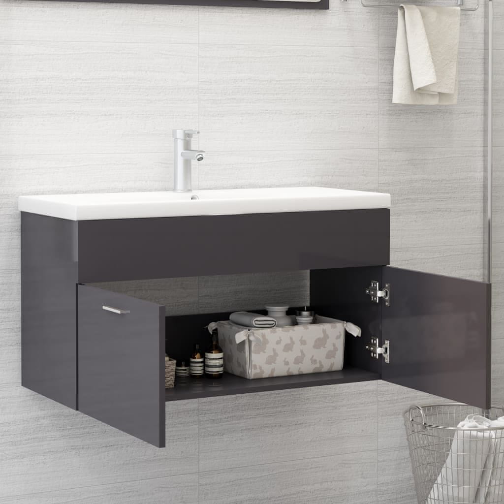 Vidaxl Ormarić s ugrađenim umivaonikom sjajni sivi konstruirano drvo