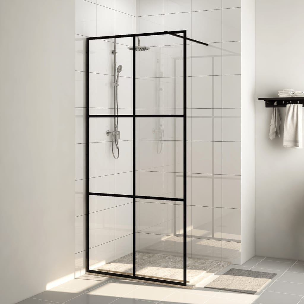 Vidaxl Pregrada za tuširanje s prozirnim staklom ESG 100 x 195 cm crna