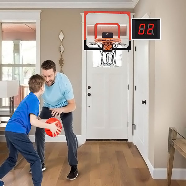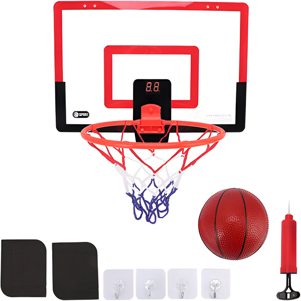 JOJOY® Košarkaški obruč za vrata s digitalnim zaslonom, Set s napuhljivom loptom i pumpom (1x obruč, 1x lopta, 1x pumpa, 1x alat) | SLAMSTAR