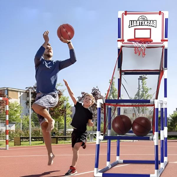 Prijenosni košarkaški set omogućuje igru kod kuće ili na otvorenom. Siguran za djecu zahvaljujući plastičnoj konstrukciji i napuhavajućoj lopti. Jednostavan za montažu, idealan za razvoj koordinacije i zabavu cijele obitelji. Paket uključuje stalak, koš i dodatne mini lopte.