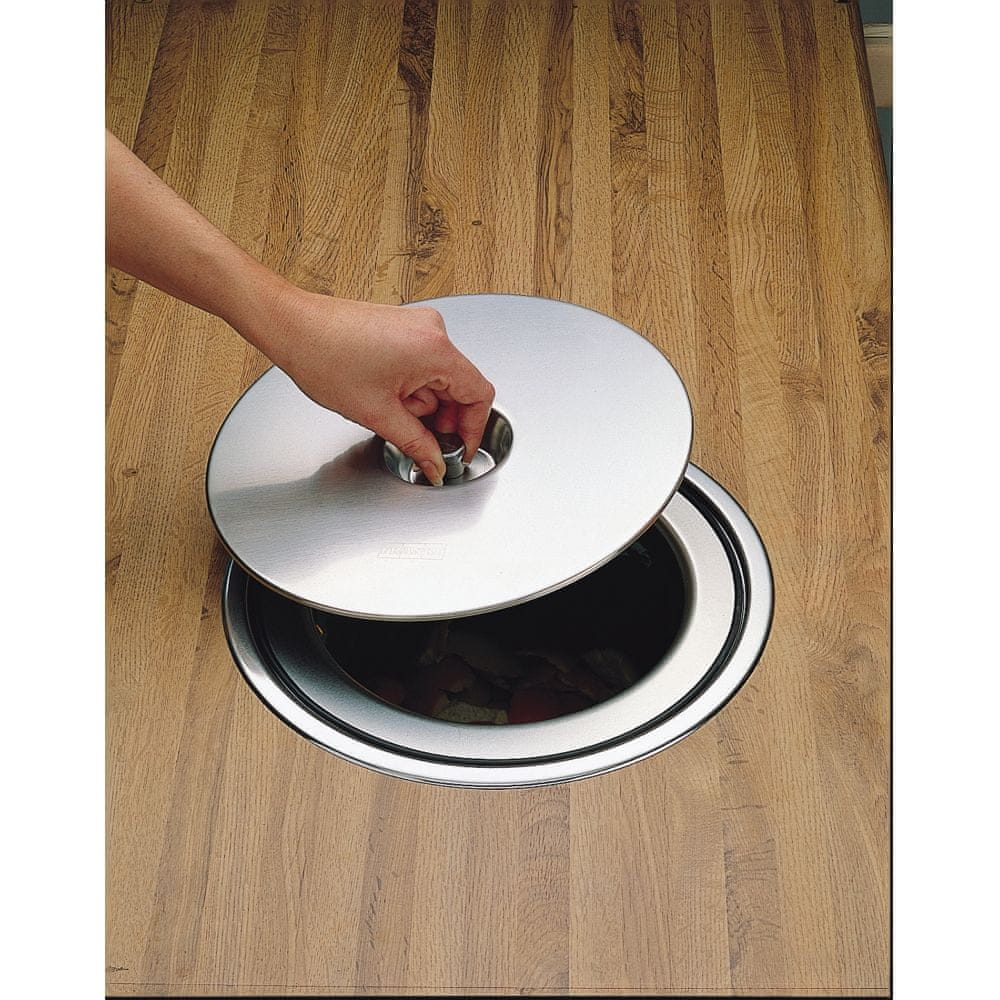Ugradbena KEA košara dizajnirana za montažu na vrh. Volumen 12 l. Zelena plastična košara. Visina 315 × ∅ 235 mm. Poklopac od nehrđajućeg čelika.