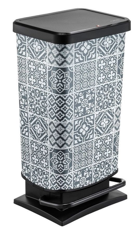Rotho Veliki plastični koš za smeće 40L s ornamentnim dizajnom - crni