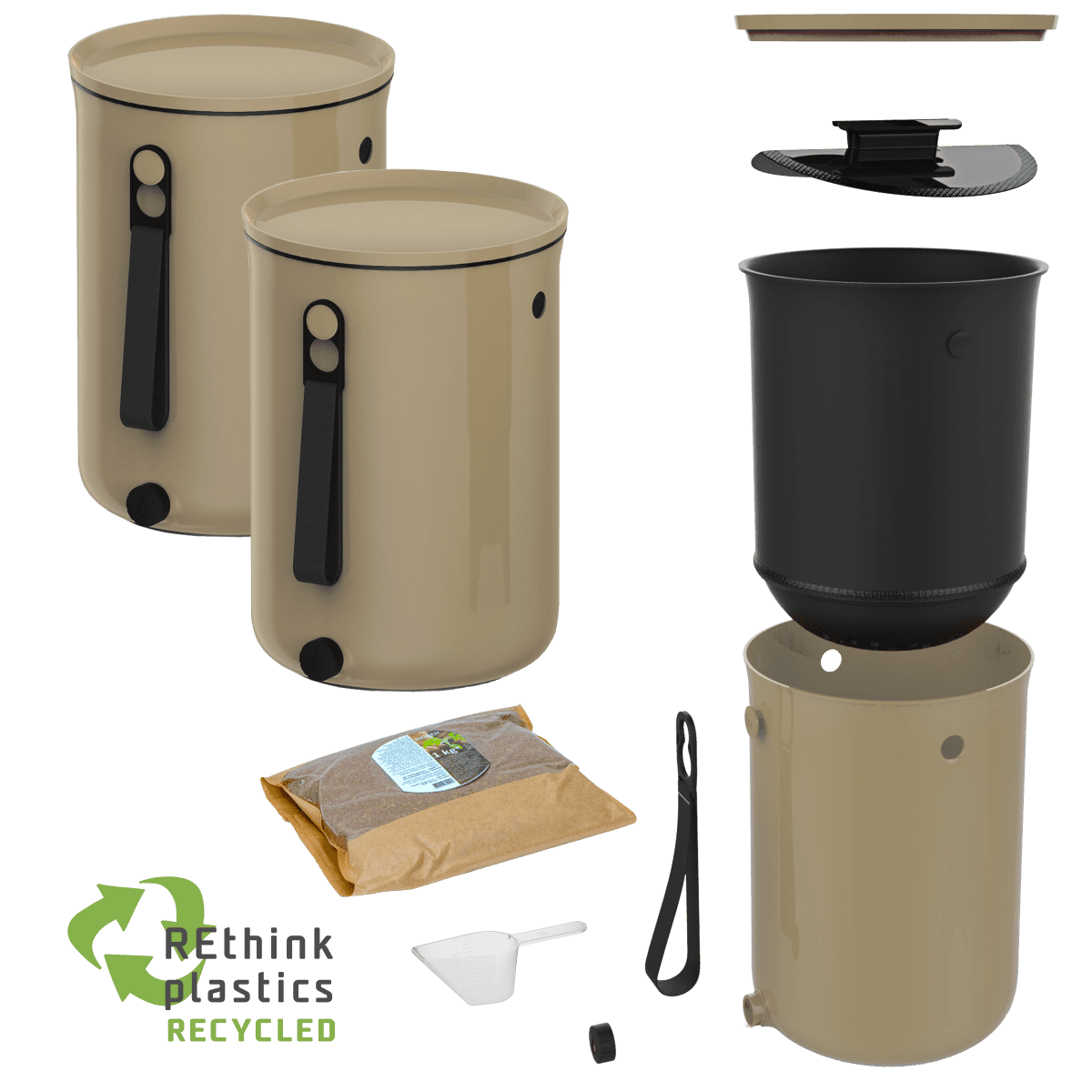 Skaza Kuhinjski komposter Bokashi Organko 2, 2x 9,6l, cappuccino (100895)