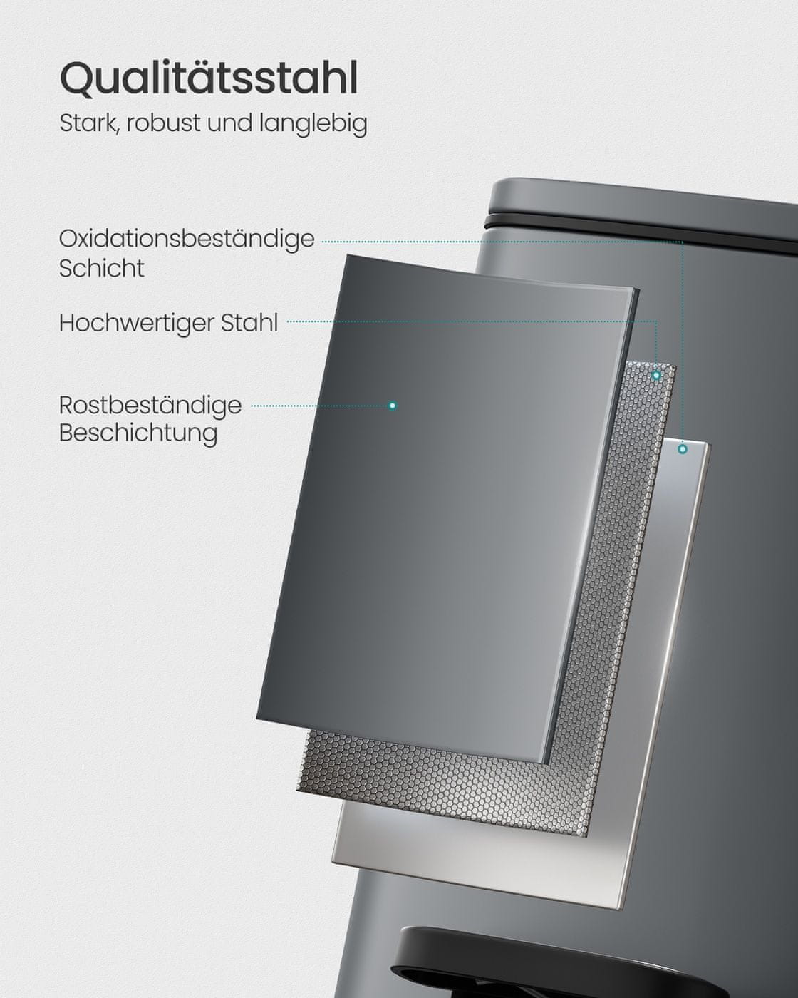 - Materijal: Vanjski spremnik od čelika unutarnja kanta od PP plastike baza od ABS plastike