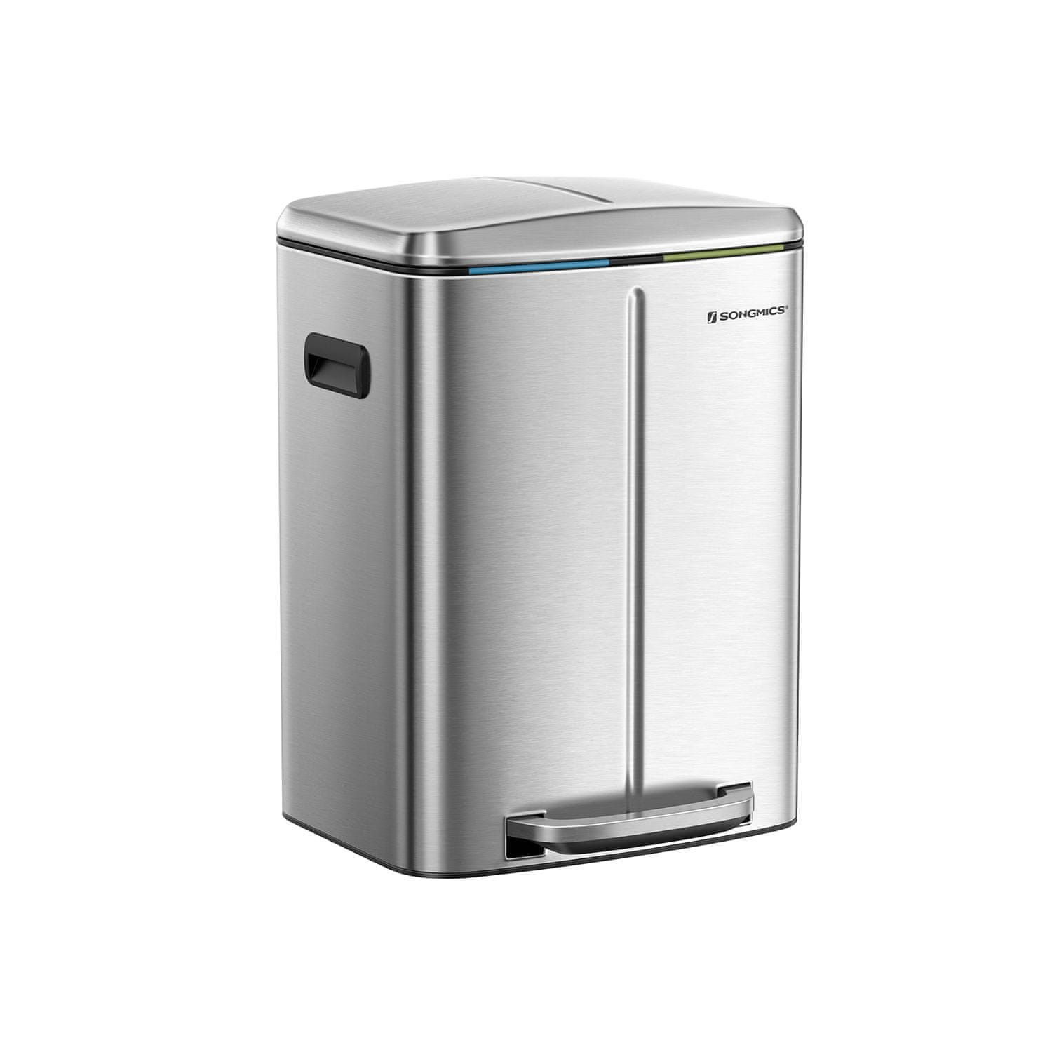 Održavajte svoju kuhinju organiziranom i urednom s ovim metalnim pedalnim košem s dva odjeljka, dizajniranim za jednostavno odvajanje otpada. Poklopci s tihim zatvaranjem i unutarnje kante pomažu zadržati neugodne mirise i olakšavaju čišćenje. Savršeno za učinkovito recikliranje i čišći dom.
