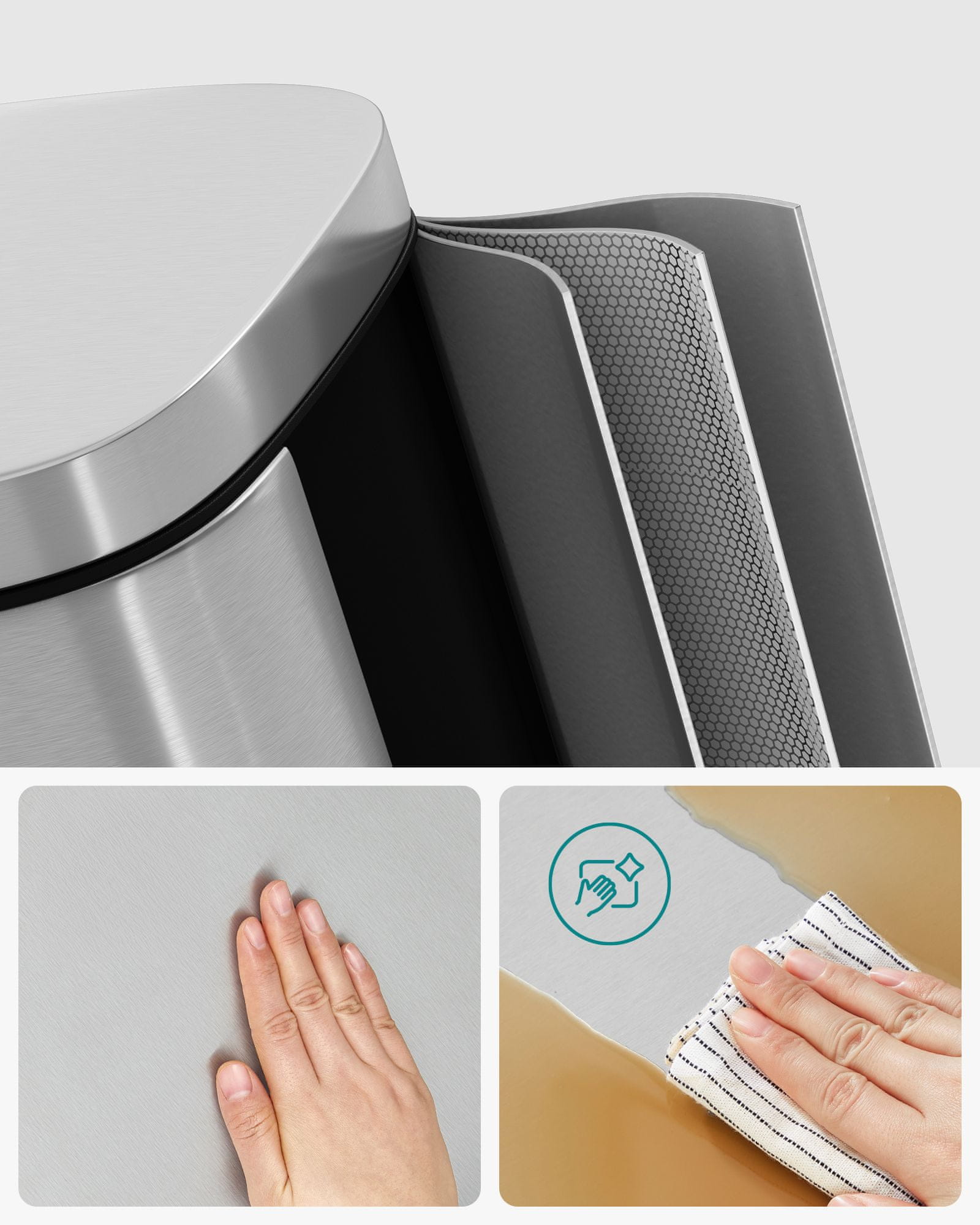 Ovaj kuhinjski koš za otpad dizajniran je kako bi ponudio praktično i higijensko rješenje za odlaganje otpada u vašem domu. Njegov moderan i elegantan izgled omogućuje mu da se besprijekorno uklopi u različite stilove interijera dok poklopac na pedalu omogućuje rukovanje bez upotrebe ruku za dodatnu praktičnost. Koš ima uklonjivu unutarnju kantu i pažljivo osmišljene elemente koji olakšavaju i čine upravljanje otpadom učinkovitijim.