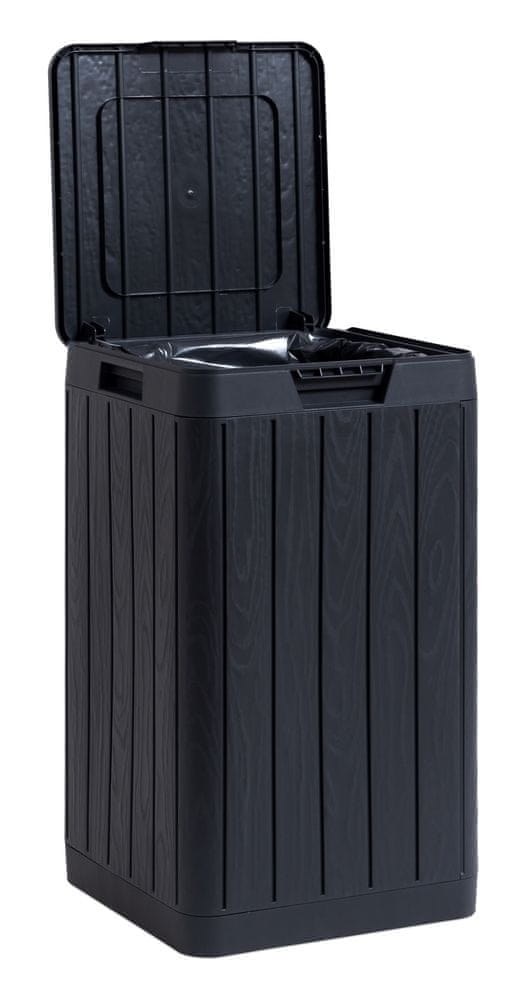 Čišćenje vrta sada će biti lako s našom plastičnom kantom za vanjski otpad RIO GARDEN! S kapacitetom od 80 litara, ova svestrana kanta je upravo ono što vam treba za vaš vrt ili vanjski prostor. S mogućnošću držanja vreća od osamdeset litara, ova kanta je savršen pratitelj za bilo koji zadatak čišćenja na otvorenom. JEDNOSTAVNO RUKOVANJE Naš glavni prioritet je vaša udobnost i jednostavno rukovanje. Zato je naša kanta opremljena praktičnim ručkama i držačem za vreće koji olakšavaju čišćenje i održavanje čistoće i urednosti vašeg prostora. Bilo da berete li lišće, skupljate travu ili uklanjate opći otpad, ova kanta će se pobrinuti za sve umjesto vas. Zahvaljujući jednostavnom mehanizmu na klik, poklopac se lako i bez napora zatvara, osiguravajući da se ne stvaraju neugodni mirisi i da otpad ostane siguran od nepovoljnih vremenskih uvjeta. EKOLOGIJA I OTPORNOST NA VREMENSKIH UVJETA Izrađena od visokokvalitetnog recikliranog materijala koji je otporan na UV zračenje, naša košara RIO GARDEN je izdržljiva i čvrsta, što osigurava da će vam služiti dugi niz godina. JEDNOSTAVNO SASTAVLJANJE Za one koji preferiraju jednostavnost, naš dizajn omogućuje jednostavno sastavljanje bez upotrebe ikakvog alata. A sa svojom elegantnom grafitnom završnom obradom i površinom s efektom drva, ova košara se uklapa u svaki vanjski prostor, dodajući moderan i elegantan izgled. S košarom RIO GARDEN više nećete morati gubiti vrijeme i energiju skupljajući smeće. Održavajte svoj vrt i vanjske prostore čistim i urednim uz našu pouzdanu i praktičnu plastičnu vanjsku košaru RIO GARDEN!